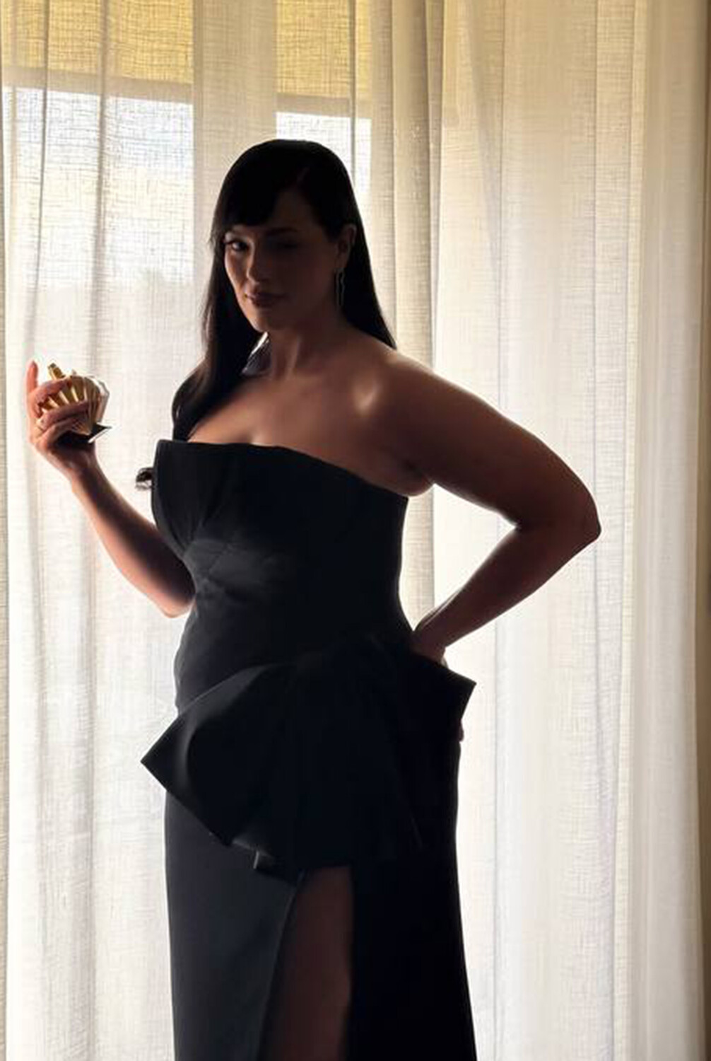 Эшли Грэм позировала в черном платье с глубоким декольте и разрезом до середины бедра. Волосы ей распустили и сделали легкий макияж. Съемка прошла на балконе в Париже с видом на город.