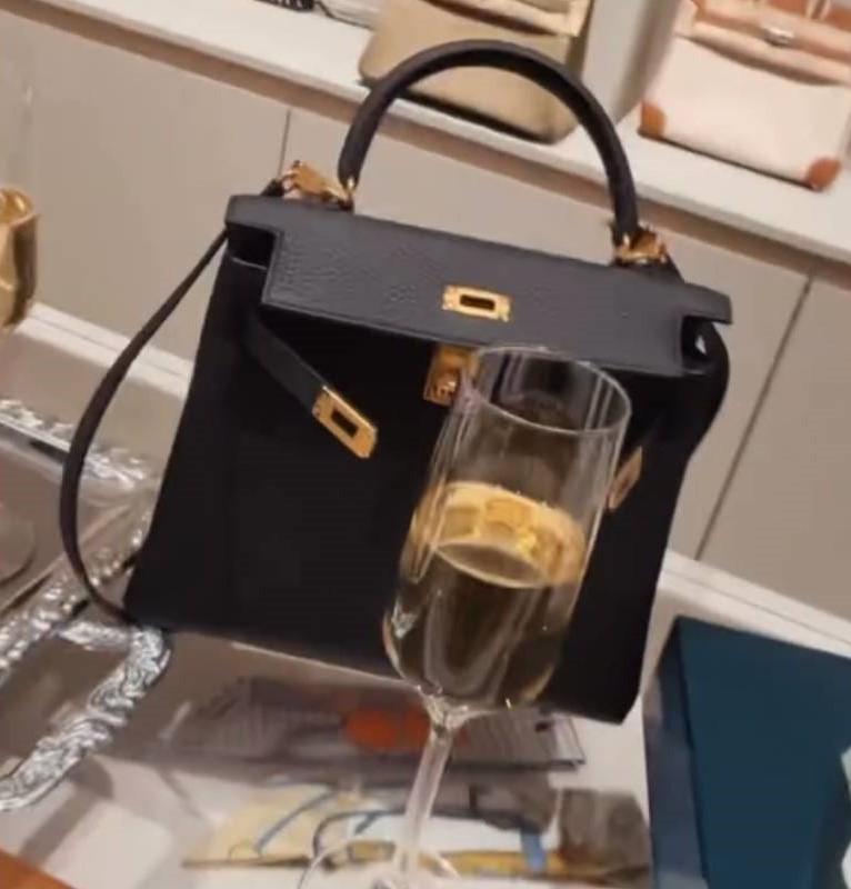 Знаменитость разместила ролик, в котором продемонстрировала черную сумку Hermes Birkin. По данным канала, стоимость изделия составляет 1,050 миллиона рублей.