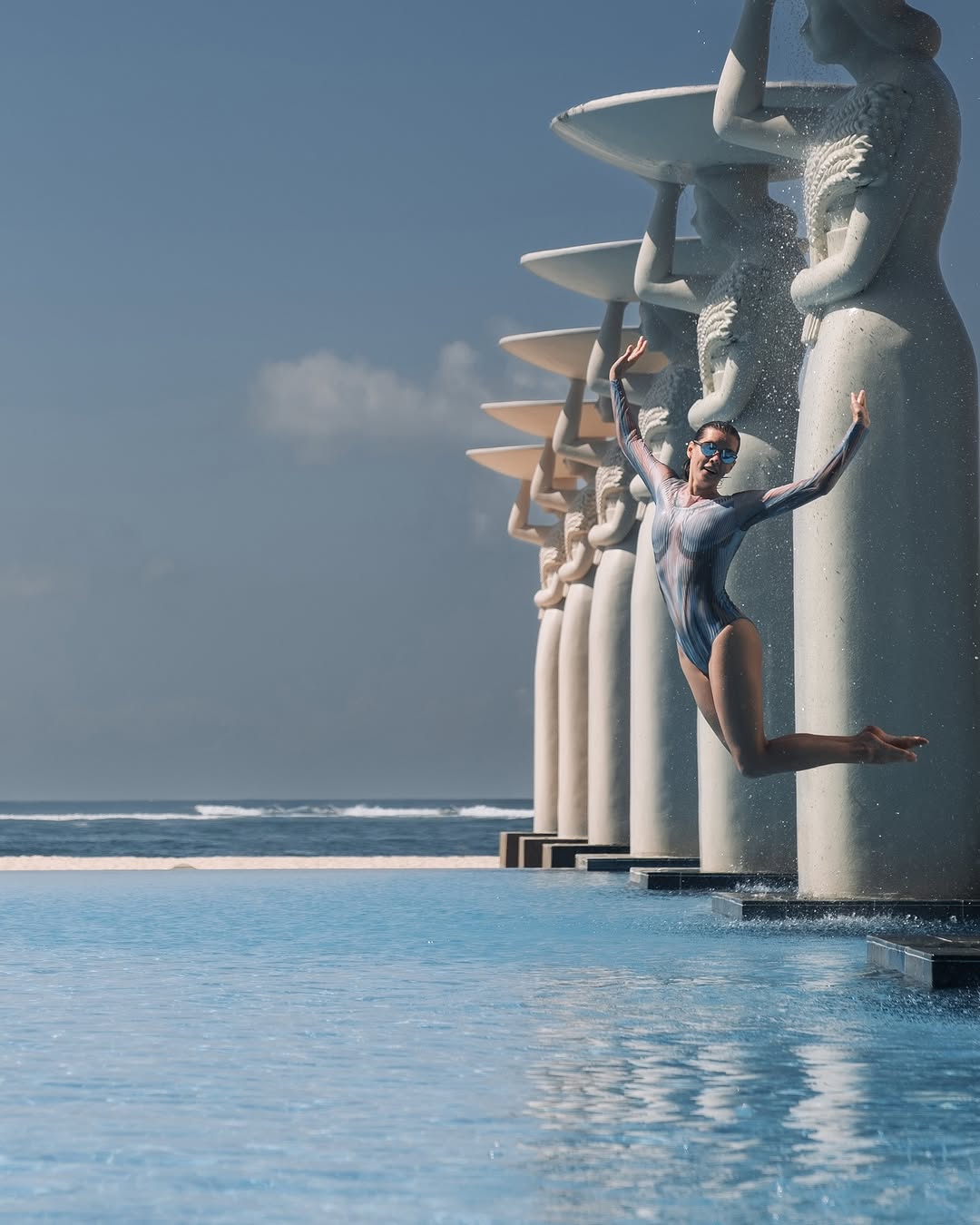 Муж знаменитости, фотограф Руслан Панов, запечатлел ее в мокром слитном купальнике. При этом на размещенных кадрах видно, что изделие было оформлено длинными рукавами и принтом, имитирующим голое женское тело.