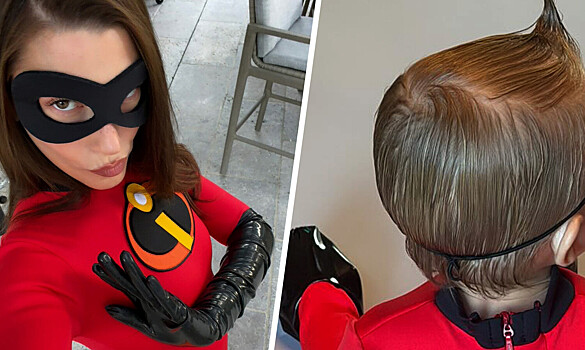 Хейли Бибер нарядилась Эластикой из «Суперсемейки», а ее сын Джек Блюз появился сразу в двух образах: сценическом наряде своего отца Джастина Бибера, а такжев костюме Джек-Джека из мультфильма.