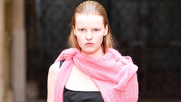 Marco Rambaldi ностальгирует по минувшему лету, пикантно завязывая рукава легкой полупрозрачной блузки под сетчатым лифом манекенщицы. Образ завершается шерстяными оверсайз-брюками и выглядит уместно даже в наших северных широтах. Правда, сверху все же стоило бы накинуть еще один слой. Например, как на показе Tory Burch. Дизайнеры представили публике сложносочиненные образы на основе не только неожиданных цветовых, но и удивительных силуэтных сочетаний. Как вам нравится коричнево-фиолетовый кардиган с короткими рукавами, у которого в запасе есть длинные рукава? Очень удобно: похолодает — и можно легко сменить длину.