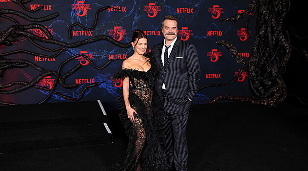 21-летняя Милли Бобби Браун позировала на красной дорожке с 50-летним Дэвидом Харбором. Для выхода на публику актриса предпочла черное кружевное платье с глубоким декольте и перьями. Волосы ей уложили в высокий пучок и сделали вечерний макияж.